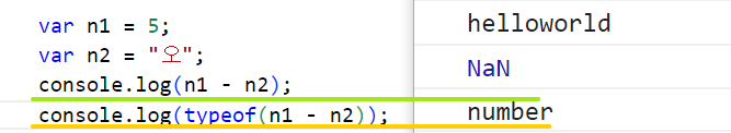 // 숫자형 5가 문자열형으로 변환된다. 형변환
