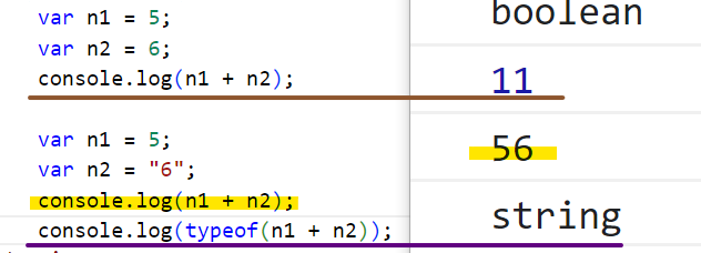 // 숫자와 논리값을 입력할 때에는 ""를 쓰지 않는다.