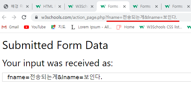 - 양식 데이터는 URL 변수( with method="get") 또는 HTTP 포스트 트랜잭션( with method="post")으로 보낼 수 있다.